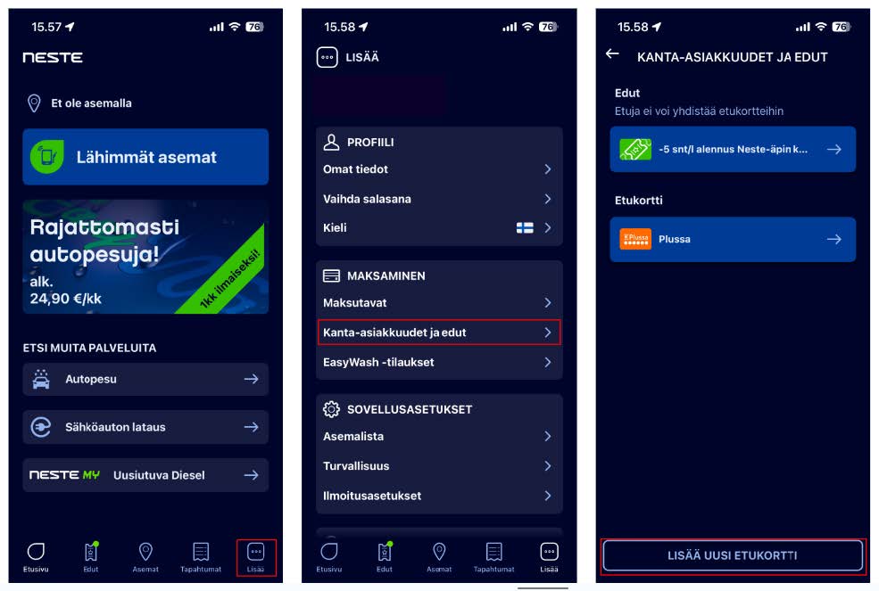 Vaihtoehto 1) Lisää jäsenkorttisi Neste-äppiin