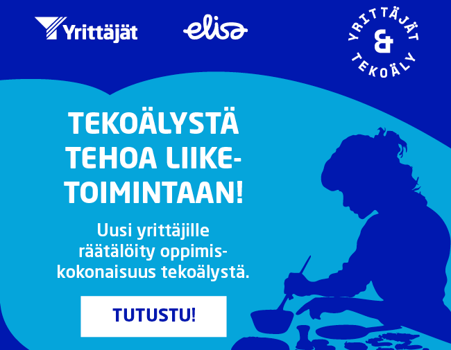 Tervetuloa uppoutumaan tekoälyn mahdollisuuksien maailmaan! Elisan ja Suomen Yrittäjien yhteinen Yrittäjät & Tekoäly -oppimiskokonaisuus on tarkoitettu juuri sinulle, joka haluat saada tekoälystä tehokkaan apurin yrittäjäarkeesi.