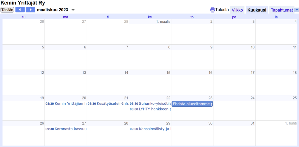 Seuraa alueen tapahtumia suoraan kalenterinäkymässä helposti tästä linkistä.