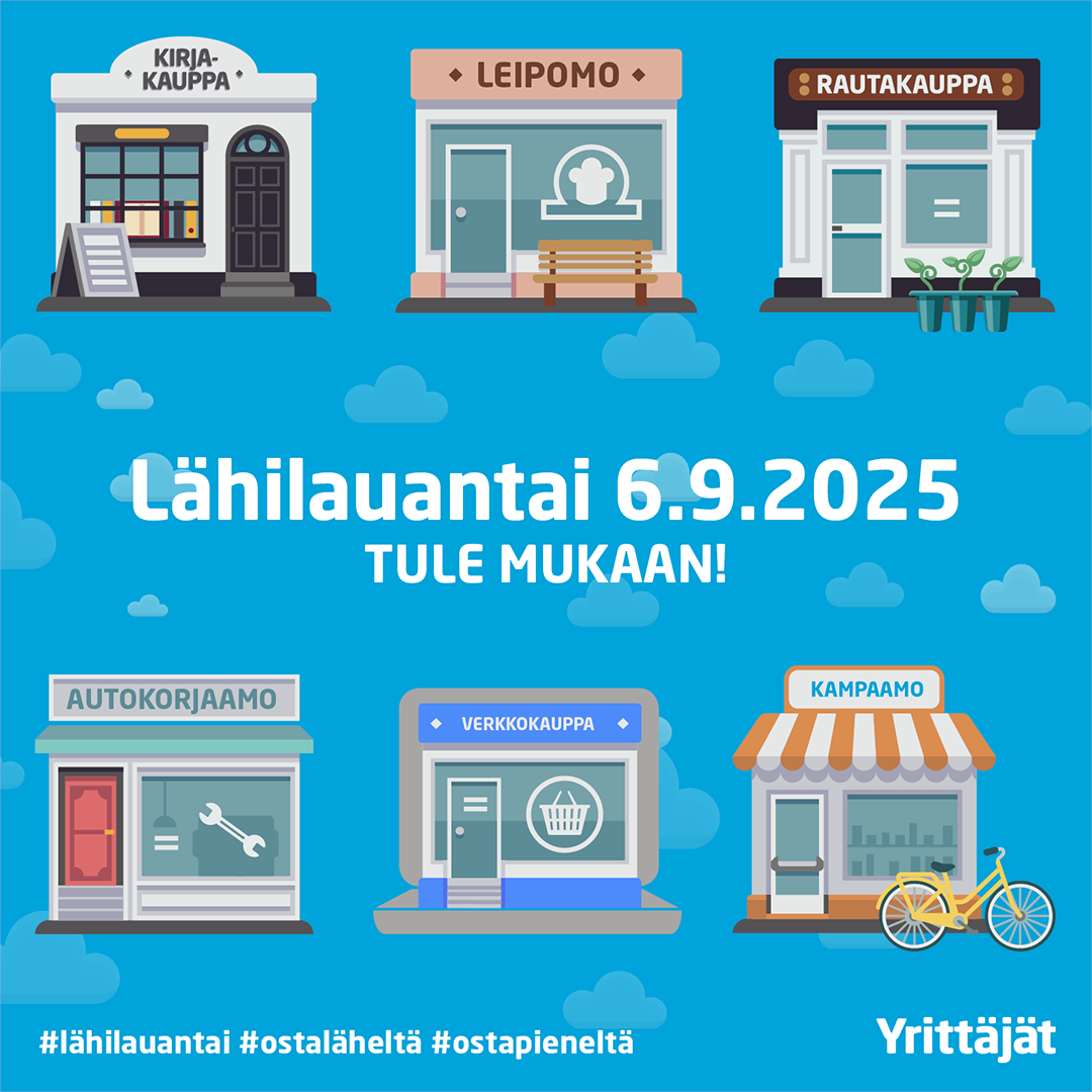 Yrittäjä, lähde mukaan Lähilauantaihin! Osallistuminen on helppoa. Hyödynnä alta löytyviä valmiita materiaaleja somessa tai tulosta printtimateriaaleja liikkeeseesi. Tältä sivulta löytyvät Lähilauantai-materiaalit ovat kaikki vapaasti käytettävissäsi: