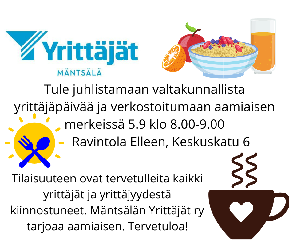 Tervetuloa viettämään valtakunnallista yrittäjäpäivää kanssamme aamiaisen merkeissä 5.9.2025