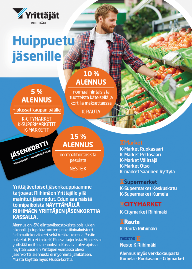Riihimäen K-ryhmän yrittäjiltä seuraavat alennukset jäsenkortilla