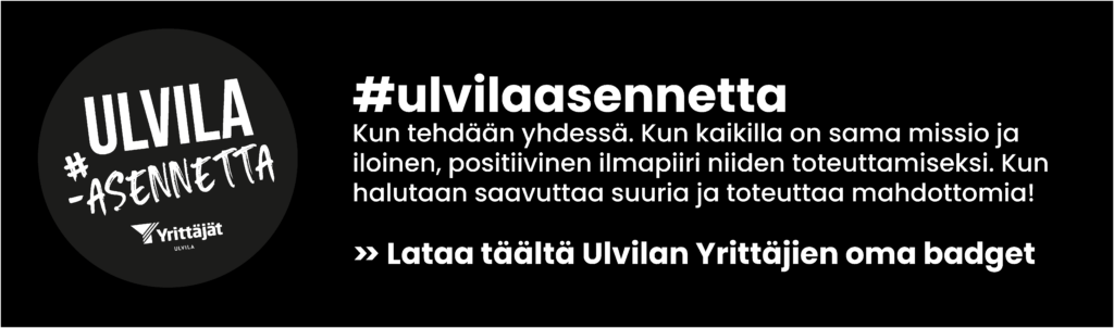 Ulvilan Yrittäjät ”Tehdään jotakin, mitä kukaan muu ei ole ennen tehnyt!” – Ulvilan Yrittäjien suusta kuultua Liity mukaan hyvään yrittäjäporukkaan! Kaikki koulutukset ja tapahtumat Selaa eri tapahtumia ja koulutuksia, joita on PALJON. Yrittäjien jäsenenä sinulla on pääsy niihin kaikkiin. Selaa koulutuksia ja tapahtumia ”Nyt pitäisi saada sellaista hyvää pöhinää aikaiseksi!” Ole meihin yhteydessä mikäli sinulla on kysyttävää, ideoita tai ajatuksia miten voisimme paremmin edistää yrittäjien asiaa! Lue blogiamme 15.11. Anna Broholm Tuhoisasta kehästä onnellisimmille vesille 15.11. Mika Toivanen Mutta tarvitaanko sitä? 11.5. Olli-Pekka Itkonen Kevät pörinöitä Instagram Seuraa meitä somessa Ulvilan Yrittäjät on erittäin aktiivinen somessa. Ota seurantaan ainakin meidän Facebook, niin tiedät mitä ja missä milloinkin tehdään ja toteutetaan! Ja minne ehdottomasti kannattaa milloinkin tulla. Ulvilan Yrittäjät fb