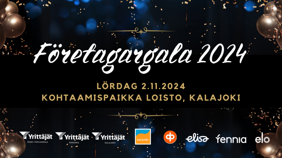 Mellersta Österbotens Företagare ordnar tillsammans med staden Kalajoki, Kalajoki Företagare och Himango Företagare samt andra samarbetsparter, årets Företagargala i Kalajoki, vid Kohtaamispaikka Loisto, invid riksväg 8. Alla företagare, lantbruksföretagare, kommun- och regionbeslutsfattare och samarbetsparter är välkomna till tillfället.