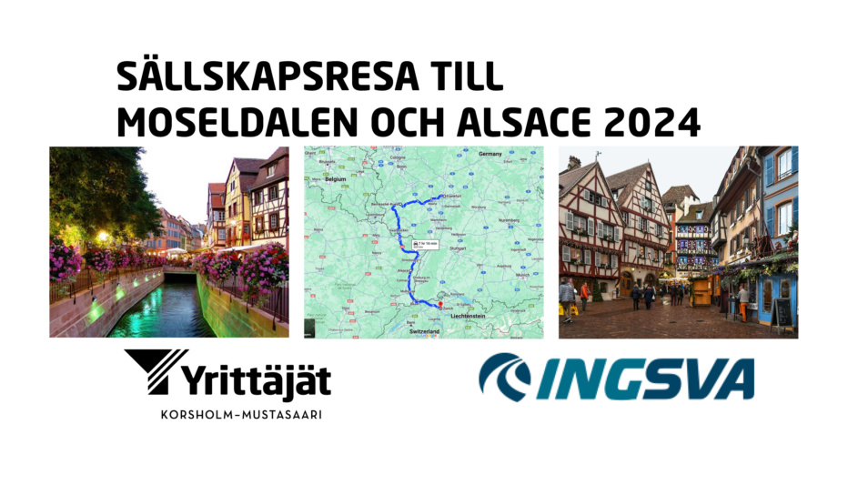 Anmälningarna skickas till: info@ingsva.fiAnmälningsavgift 150 €, betalas två veckor efter bokning och slutbetalning 45 dagar före avresaNär du anmäler dig:Skriv i meddelanderubriken: Korsholm MoseldalenSedan följande uppgifter:-Namn som det är skrivet i passet-Hemadress-E-post-adress-Telefonnummer-FaktureringsadressVÄLKOMMEN!(Vid eventuella frågor som inte rör det angivna researrangemanget kan du kontakta Maria Norrlin-Asplund, ordförande för Korsholms Företagare, på telefonnummer 050 5555226