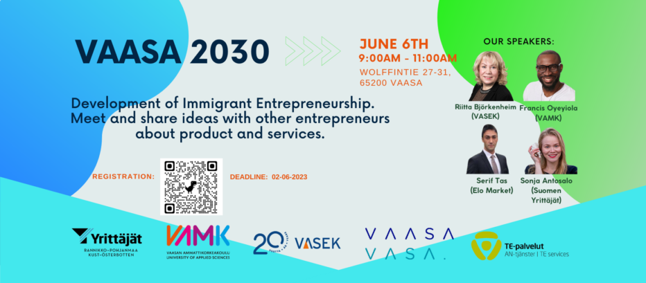 Meet and share ideas with other immigrant entrepreneurs in the Vaasa region. Tackle and find solutions to the challenges that immigrant entrepreneurs face in Finland. Exchange contacts, connect and grow yours and their network.