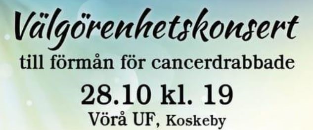 Vörå Företagare ordnar en välgörenhetskonsert till förmån för cancerdrabbade i Vörå Uf:s lokal lördagen den 28.10.2023 klockan 19.00.