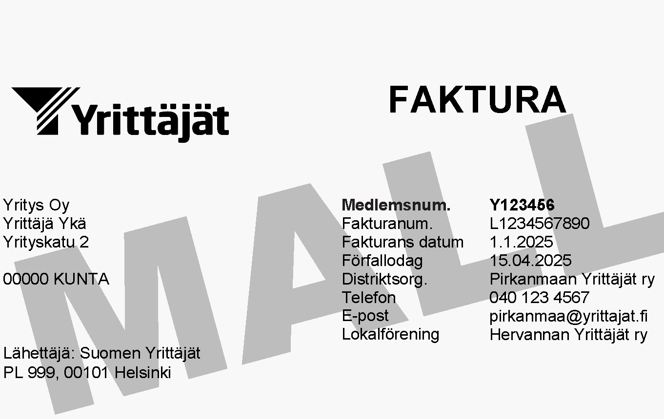 Du väljer leveranssätt för medlemsavgiftsfakturan när du ansluter dig. Fakturan skickas på det språk som angetts som företagets språk.