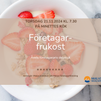 Välkommen på företagarfrukost på Minettes Kök torsdagen den 21 november från kl. 7.30 till 9.00. Program: Malax kommun delar ut…