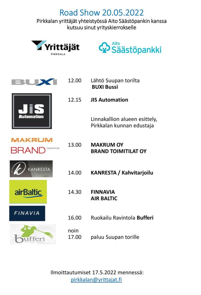 20.5. Road Show Pirkkala (Pirkkalan Yrittäjät yhteistyössä Aito Säästöpankin kanssa)