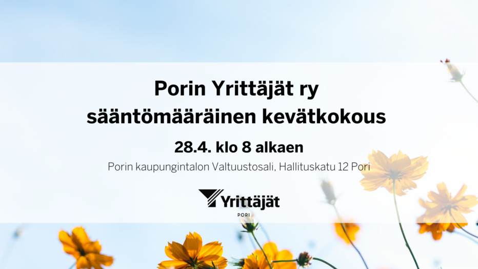 Arvoisa jäsen, tervetuloa Porin Yrittäjät ry:n sääntömääräiseen kevätkokoukseen!