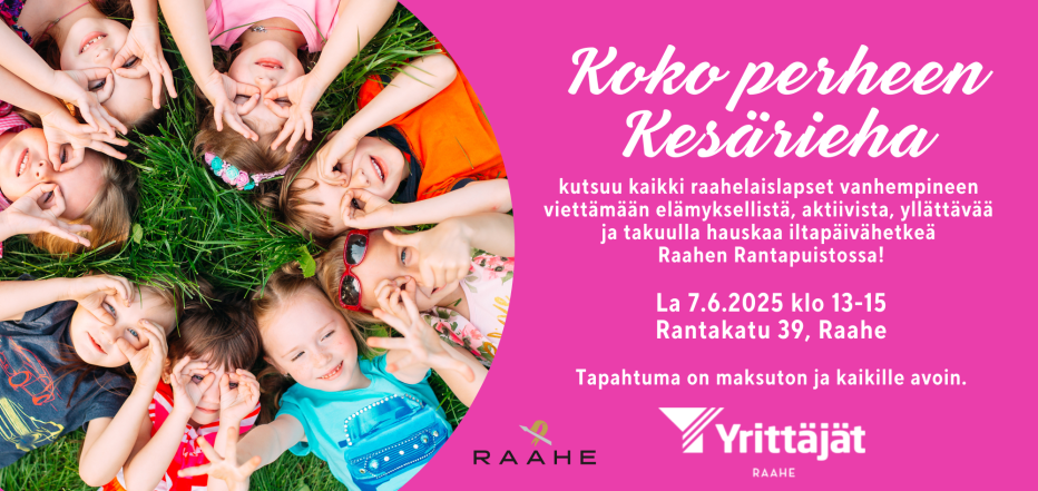Kesäkuussa kutsumme jälleen kaikki raahelaislapset vanhempineen viettämään elämyksellistä, aktiivista, yllättävää ja takuulla hauskaa iltapäivää Raahen Rantapuistossa!