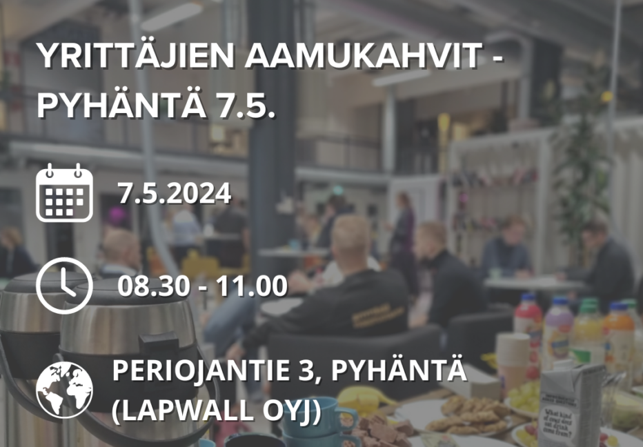 Aamukahveilla pääset kuulemaan Lapwallin yritystarinaa sekä heidän tulevaisuuden suunnitelmiaan. Mukana on myös liiketoiminnan kehittämistä tukevia tahoja, joiden kanssa keskustelua voi jatkaa tapahtuman jälkeenkin. Tilaisuudessa pääset myös verkostoitumaan muiden yrittäjien kanssa.