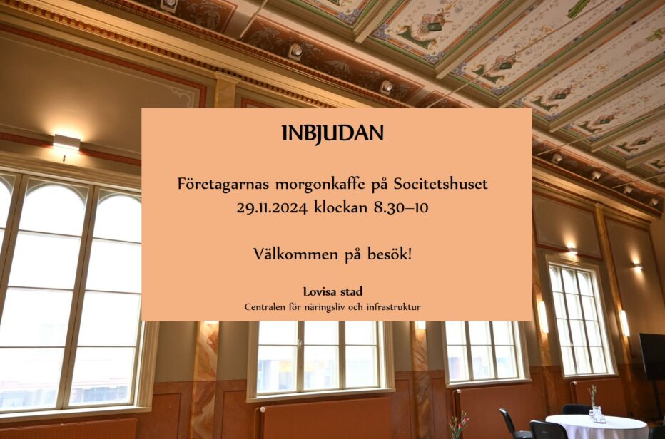 Yrittäjien aamukahvit yhdessä Loviisan kaupungin Elinvoima- ja Infrastruktuurikeskuksen kanssa. ”Joulukuun” aamukahvit juomme jo pe 29.11. klo 8.30 Seurahuoneella.