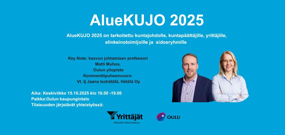 AlueKUJO 2025 kutsuu kuntapäättäjiä, elinkeinotoimijoita, yrittäjiä ja yrittäjien sidosryhmiä alueelliseen Kunnallisjohdon seminaariin Ouluun.