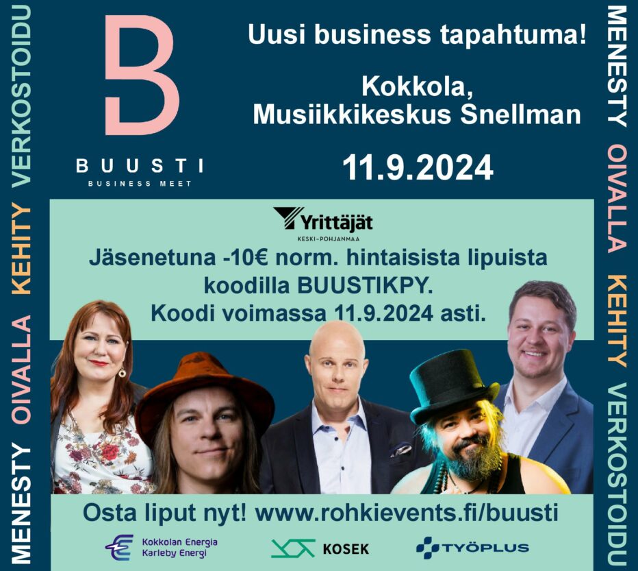 Yrittäjäjärjestön jäsenille 10€ alennus lipuista koodilla BUUSTIKPY