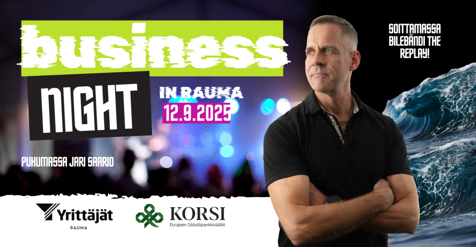 Business Night In Rauma viihdyttää jälleen 12.9.2025! Viihteellinen verkostoitumisilta tuo yrittäjät yhteen inspiroivan puhujan ja musiikin pariin.