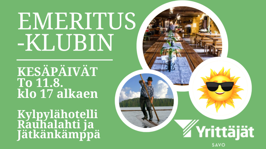 Tervetuloa Emeritus -klubin Kesäpäiville Kylpylähotelli Rauhalahteen klo 17:00 alkaen. Päivän aloitamme Ravintola ClubR puolella kahvin ja pienen suolaisen merkeissä.
