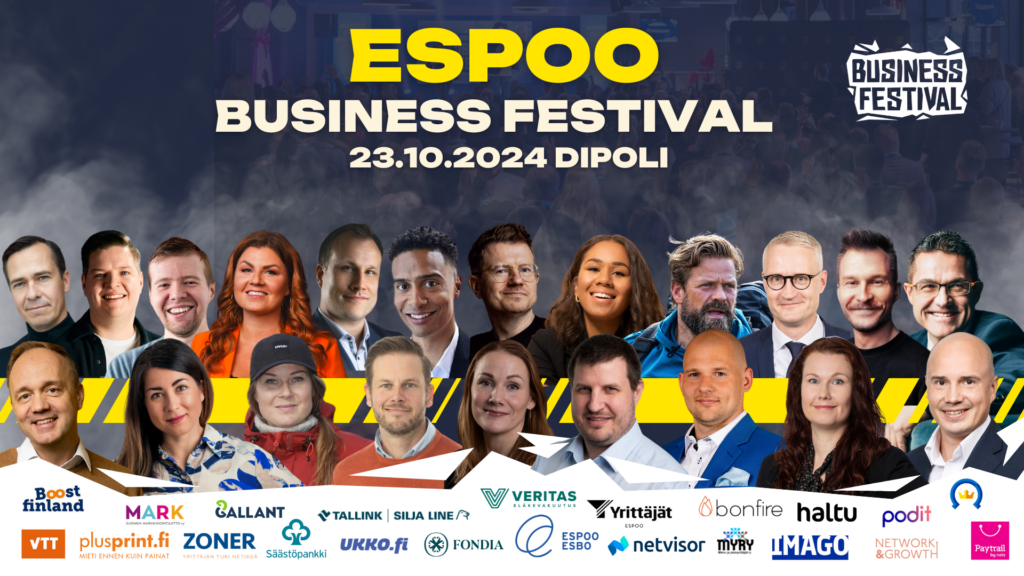 Koko päivän yritystapahtuma tuo yhteen paikalliset tekijät, yritykset ja elinkeinoelämän klo 10-17 Espoon Dipolissa. Luvassa on koko päivä myynnin, johtamisen ja kasvun asiantuntijasisältöjä, kaupan mahdollisuuksia, verkostoitumista sekä tottakai jälkipelit.