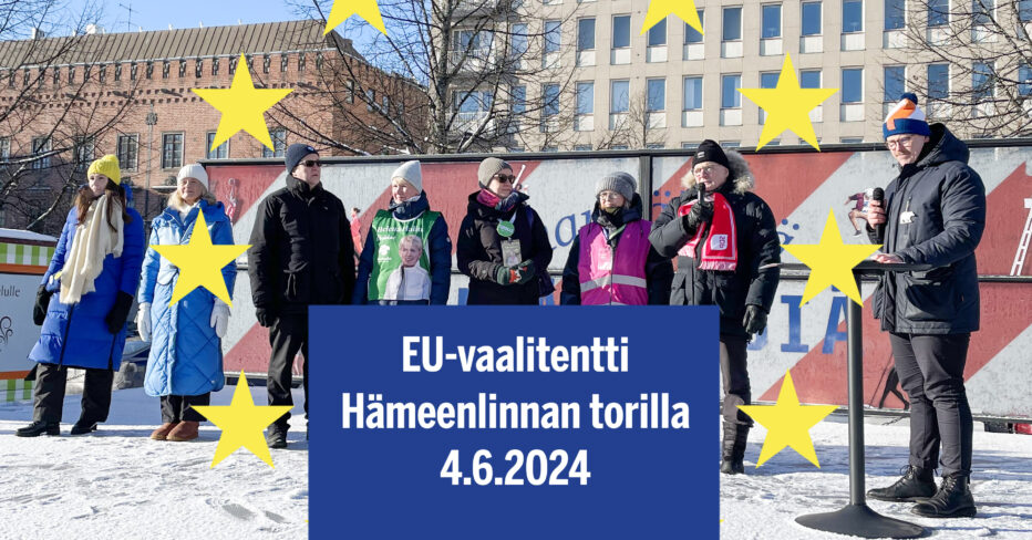EU-vaalitentti Hämeenlinnan torilla tiistaina 4.6.2024 klo 10–12.