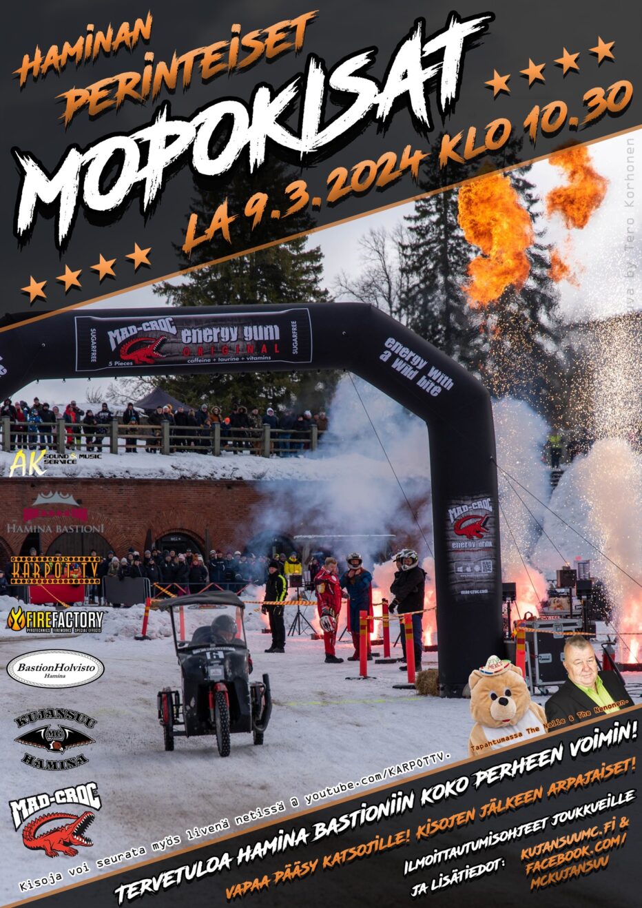 Haminan perinteiset mopokisat järjestetään lauantaina 9.3. klo 10.30 alkaen Bastionissa ja Haminan Yrittäjät on mukana ainakin yhdellä joukkueella. Mukaan mahtuu vielä innokkaita kuskeja ja intoa tarvitaan enemmän kuin taitoa. Ilmoita kiinnostuksesi Koivulan Jarnolle 044 972 4076 tai info@jarnokoivula.fi