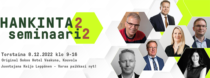 Tervetuloa Hankintaseminaariin 2022 Original Sokos Hotel Vaakunaan torstaina 8.12.2022 klo 9.00–16.00.