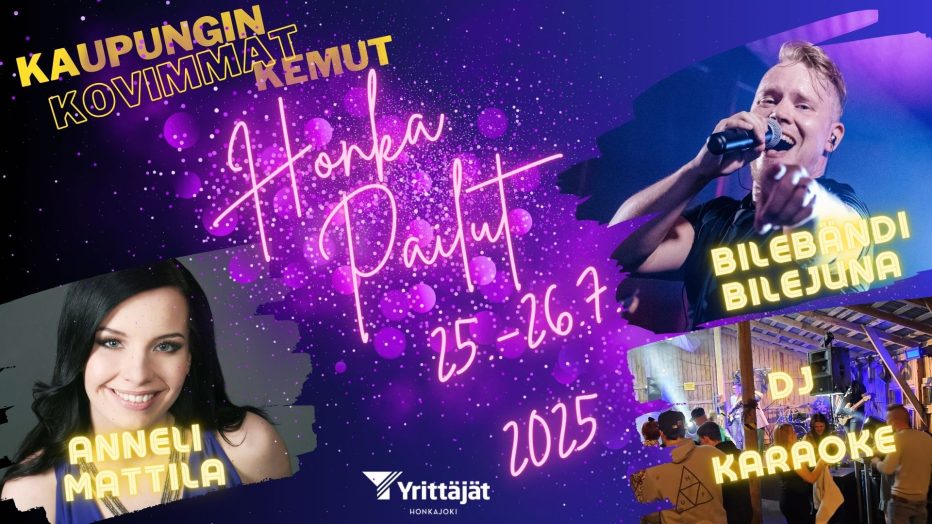 Kaupungin kuumimat kemut pidetään perjantaina 25.7. ja lauantaina 26.7. Honkajoella. Perjantaina HonkaPailuissa Anneli Mattila yhtyeineen ja lauantaina paikalle saapuu bilebändi Bilejuna! Lisäksi Pailuravintolassa Jounin karaoke! Loppuillan musiikista vastavat DJ Södelius ja DJ Mifa!