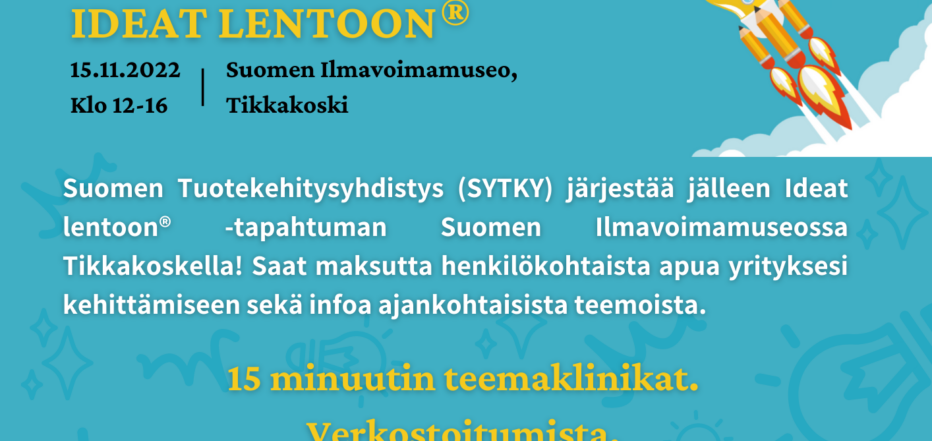 Tapahtuman sivusto: https://www.sytky.com/tapahtumat/ideat-lentoonr-tikkakoskella-15112022