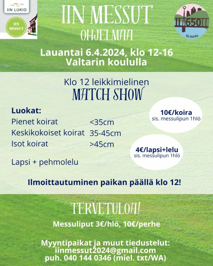 Messuilla ohjelmassa mm. hauska Match Show perheen karvaturreille, monipuolisesti harrastelajien esittelyitä, kivaa puuhaa perheen pienimmille, musiikkiesityksiä, myyjiä ja yritysesittelyitä sekä kahvia ja virvokkeita kanttiinista.