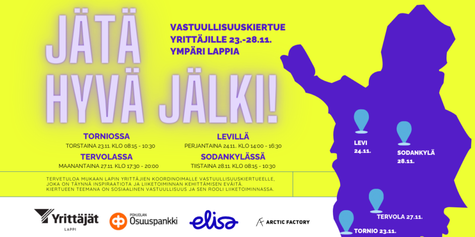 Lapin Yrittäjien vastuullisuuskiertue kiertää ympäri Lappia 23.–28.11.2023.