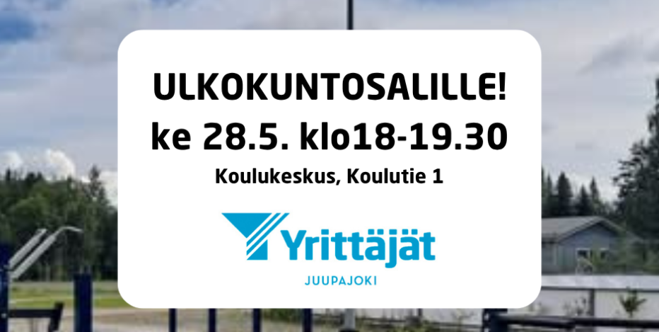 Juupajoen Yrittäjät tarjoaa yrittäjille ja heidän läheisilleen ohjatun liikuntahetken koulukeskuksen ulkokuntosalilla, ja vetäjänä toimii tuttu hyvinvointiyrittäjä Aki Kallonen. Tule oppimaan, miten voit pitää itsesi kunnossa läpi työuran ja sen jälkeenkin!