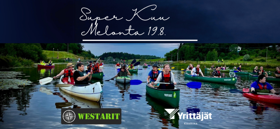 Tervetuloa ihailemaan elokuun superkuuta tunnelmallisesti Aurajoen laineilla meloen 😍. Tule yksin tai kaksin, voit ottaa puolison tai kaverin mukaan! Tapahtuma on Kaarinan Yrittäjien jäsenille.