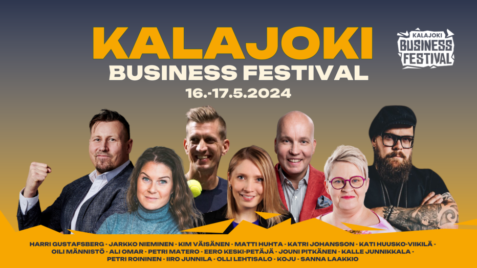 Keski-Pohjanmaan Yrittäjät on 16.-17.5. järjestettävän Kalajoki Business Festival-tapahtuman yhteistyökumppani. Kutsumme tervetulleeksi tapahtumaan koko jäsenistömme. Lippuja tapahtumaan on myynnissä rajoitetun ajan ja voimme tarjota Teille jäsenetuna -15 % alennuksen lippujen hinnasta koodilla “YRITTAJA”