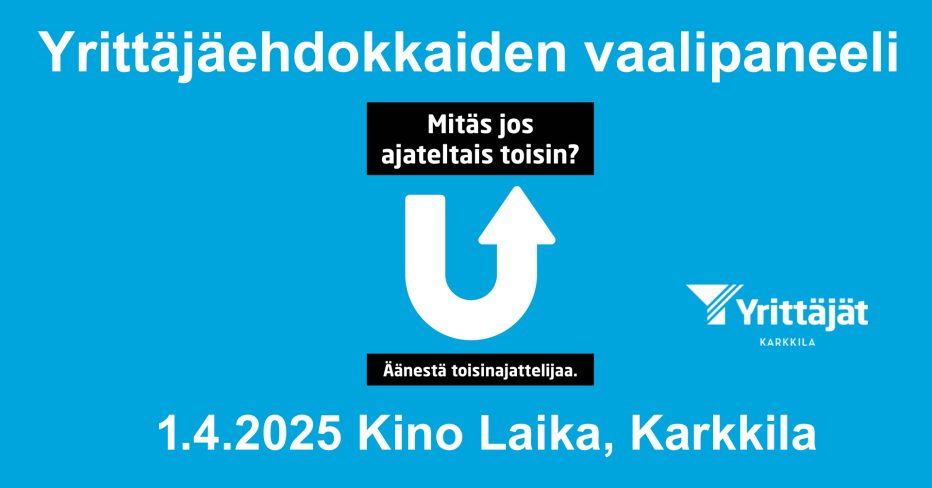 Karkkilan Yrittäjät ry järjestää tiistaina 1.4.2025 Kino Laikan salissa vaalipaneelin kaikille karkkilalaisille kunta- ja aluevaalien yrittäjäehdokkaille.