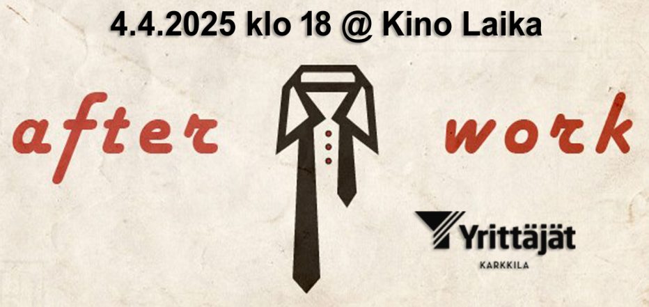 Perinteinen joka kuukausittainen Karkkilan yrittäjien AfterWork, tällä kertaa Kino Laikan kabinetissa (Valurinkatu 2 C, Karkkila).