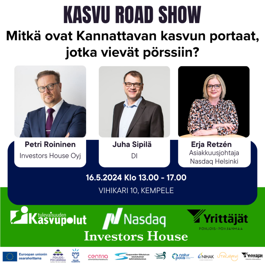 KASVU ROAD SHOW – Mitkä ovat kannattavan kasvun portaat, jotka vievät pörssiin?