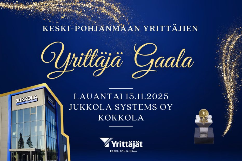 Vuosi huipentuu upeaan Yrittäjägaalaan, joka tänä vuonna järjestetään teemalla: Kun teollisuus kohtaa glamourin. Punainen matto levitetään sinne, missä innovaatio, yrittäjyys ja tekemisen meininki kohtaavat. Yrittäjäjuhla järjestetään Jukkola Systems Oy:n uusissa toimitiloissa Kokkolassa 15.11.