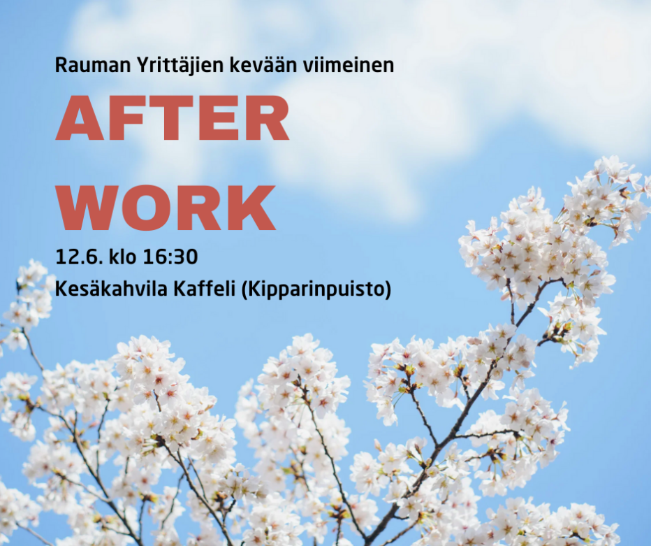Rauman Yrittäjien kevään viimeinen after work järjestetään 12.6. klo 16:30 Kesäkahvila Kaffelissa (Kipparinpuisto).