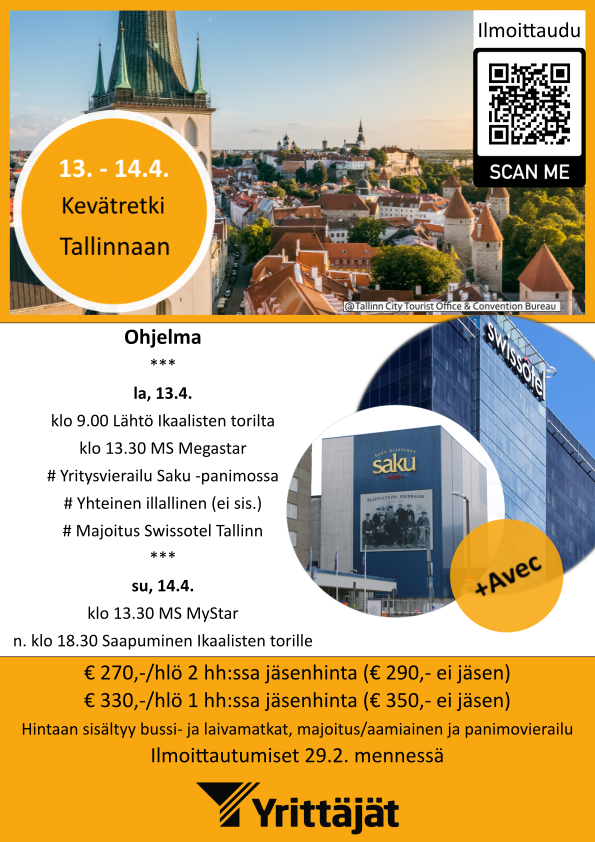 Ikaalisten yrittäjät suuntaavat kevätretkelle Tallinnaan – upea tilaisuus verkostoitua ja viettää aikaa yhdessä kauniissa Tallinnassa. Liity mukaan!