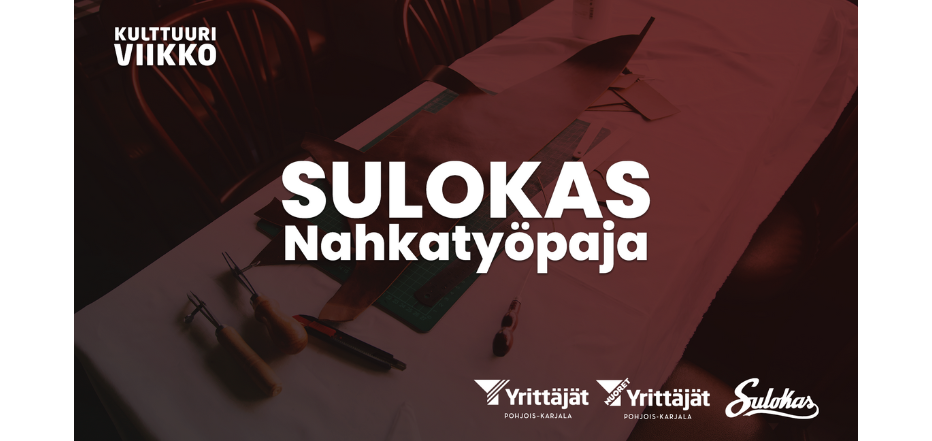Nahkatyöpaja on osa Pohjois-Karjalan Nuorten Yrittäjien järjestämää Kulttuuriviikkoa. Kulttuuriviikolla tutustut eri kulttuurialan yrittäjiin ja muihin toimijoihin aktiviteettien, paneelien, työpajojen sekä juhlien kera. Osana Kulttuuriviikkoa ovat esimerkiksi Mullet Cutin SM-kilpailut ja Y-summer Fest Liperin rantamakasiinilla. Kulttuuriviikolla Pohjois-Karjalan Nuoret Yrittäjät ja yhteistyökumppanit haluavat näyttää tukensa pohjoiskarjalaisille kulttuuri- sekä luovan alan yrittäjille. Lue lisää kulttuuriviikosta täältä, sekä tule mukaan muihinkin tapahtumiin!