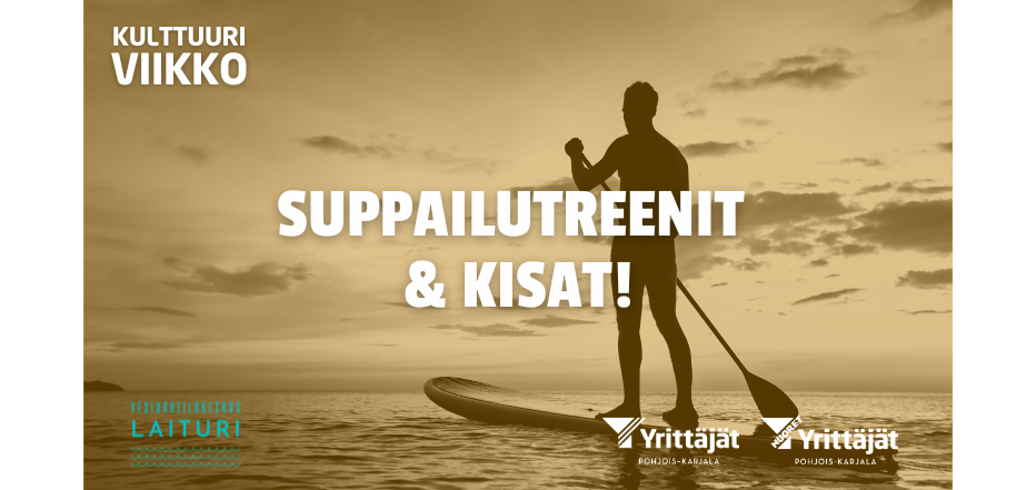 Suppailutreenit ja kisat on osa Pohjois-Karjalan Nuorten Yrittäjien järjestämää Kulttuuriviikkoa. Kulttuuriviikolla tutustut eri kulttuurialan yrittäjiin ja muihin toimijoihin aktiviteettien, paneelien, työpajojen sekä juhlien kera. Osana Kulttuuriviikkoa ovat esimerkiksi Mullet Cutin SM-kilpailut ja Y-summer Fest Liperin rantamakasiinilla. Kulttuuriviikolla Pohjois-Karjalan Nuoret Yrittäjät ja yhteistyökumppanit haluavat näyttää tukensa pohjoiskarjalaisille kulttuuri- sekä luovan alan yrittäjille. Lue lisää kulttuuriviikosta täältä, sekä tule mukaan muihinkin tapahtumiin!