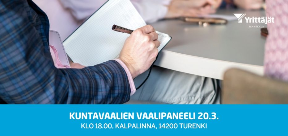Janakkalan Yrittäjät järjestää kuntavaalien vaalipaneelin 20.3. klo 18.00 Kalpalinnassa. Kutsumme kaikkia puolueita ja listoja osallistumaan keskusteluun Janakkalan tulevaisuudesta. Keskustelun painopiste on elinvoimassa, elinkeinoissa ja yritystoiminnassa. Tervetuloa paikan päälle seuraamaan keskustelua!