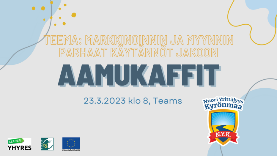 Kuukausittaiset aamukaffit vuonna 2023 järjestää Nuori Yrittäjyys Kyrönmaa -hanke.