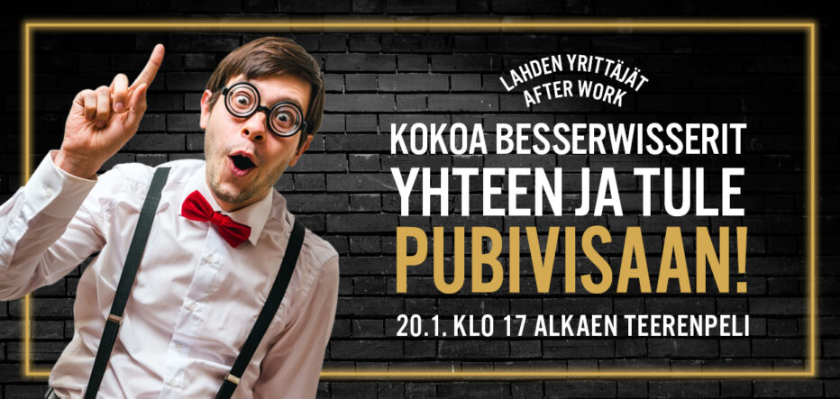 Lahden Yrittäjien After Work Yrittäjät Pubivisa perjantaina 20.1. klo 17 alkaen Teerenpelissä.