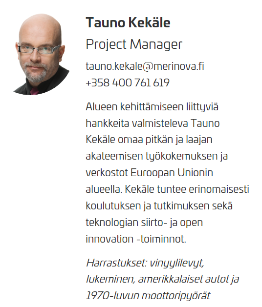 Merinova Oy:n Project Manager Tauno Kekäle kuvaa tulevia teollisia investointeja ja avaa niiden kautta tulevia bisnesmahdollisuuksia ymmärrettävällä tavalla, sillä Taunolla on muun osaamisensa lisäksi vahva kokemus yrittäjäjärjestössä toimimisesta.