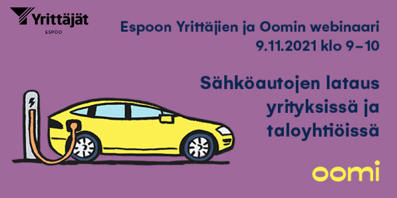 Asiantuntijana webinaarissa toimii Oomin sähköisen liikkumisen tuotepäällikkö Timo Kenttälä. Lisäksi asiakkuuspäällikkö Toni Punkkinen kertoo lyhyesti Espoon Yrittäjien ja Oomin yhteistyöstä ja ajankohtaisesta sähkötarjouksesta.