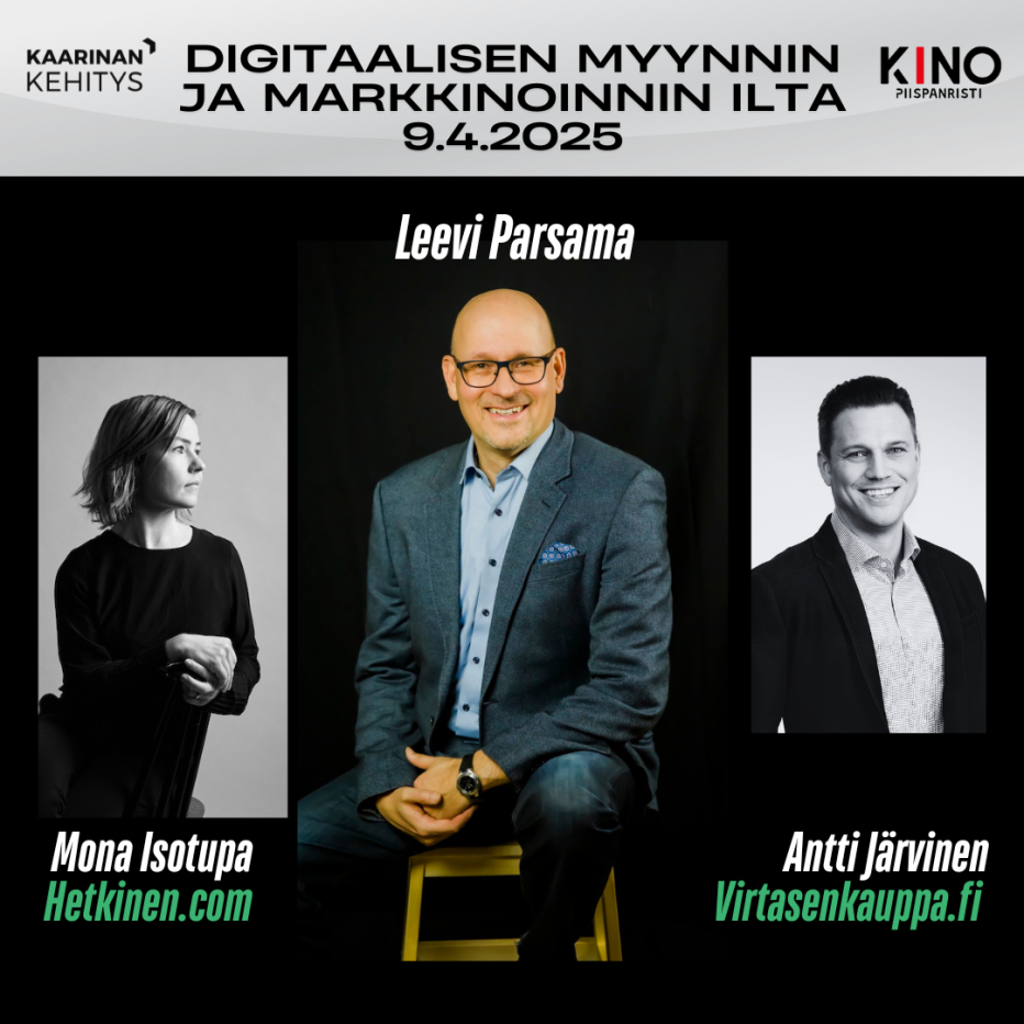 - Tapahtuman vetäjä: Leevi Parsama, Digital Commerce Specialist – ”suomalaisen verkkokaupan kummisetä”