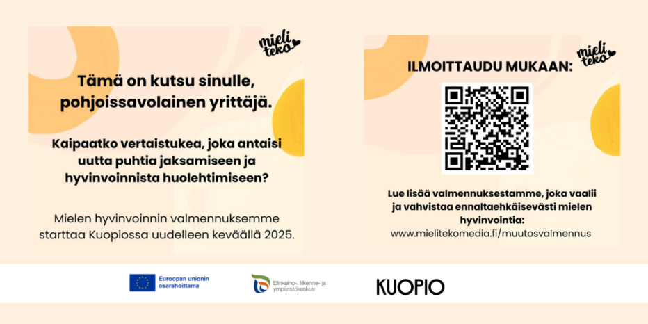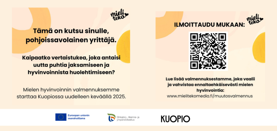 Mieliteko tarjoaa ensi vuoden alussa avoimen, jokaiselle pohjoissavolaiselle yrittäjälle suunnatun ja ison suosion saavuttaneen mielen hyvinvoinnin valmennuksen.