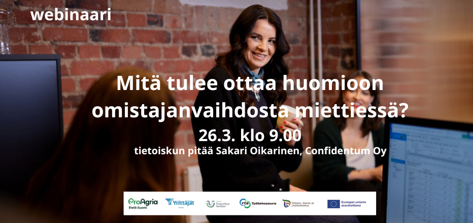Oletko pohtimassa omistajanvaihdosta joko myyjän tai ostajan näkökulmasta? Tule linjoille kuulemaan faktaa ja täsmävinkkejä, kuinka voit valmistautua tulevaan omistajanvaihdokseen ja edistää siten yrityksesi myyntiä.