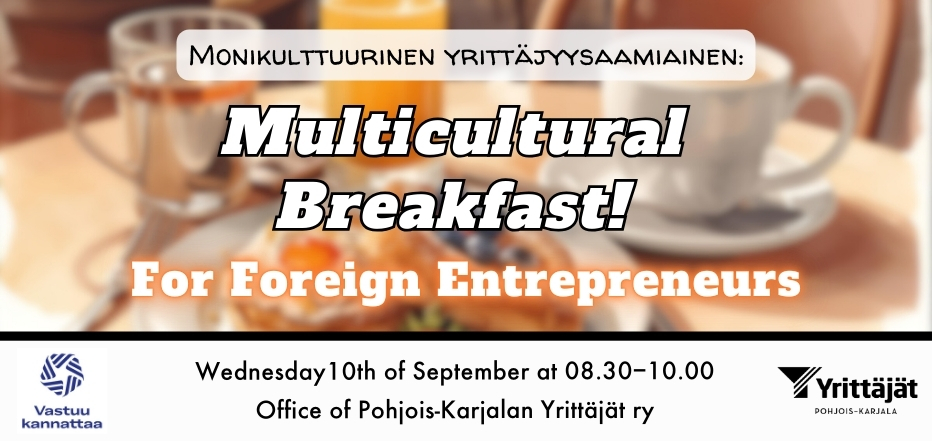 Dear entrepreneur with a foreign or immigrant background! We welcome you to our delicious breakfast to network, to get to know Pohjois-Karjalan Yrittäjät, seek peer support and hear the message of entrepreneurship! 🌏 🥐